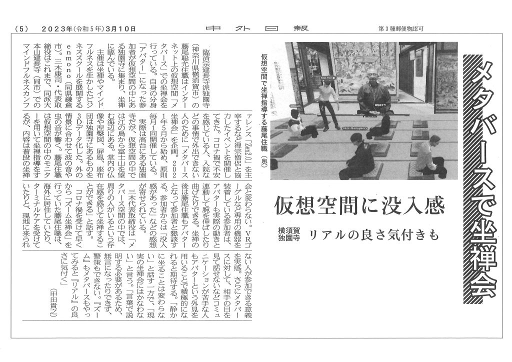まずは坐禅を体験してみましょう。Let’s do Zazen first! 海外ビジネススクール向けオンライン坐禅会 独園寺の記事一覧 / Dokuonji Articles 『毎日新聞』オンライン記事2022年6月15日 『月刊住職』記事2021年10月11日 『毎日新聞』記事2021年7月31日 『東洋経済』記事2021年7月31日 『中外日報』記事2021年7月31日 直接読める記事一覧 プレジデント2024.1.12号 20230905100445_00002ダウンロード 『プレジデント』2022年9月16日号 『プレジデント』2022年2月25日号 『日本経済新聞』2022年1月20日夕刊 『プレジデント』2021年10月29日号 『東洋経済』より 『朝日新聞』より 建長寺冊子『巨福』より 『中外日報』より 『プレジデント』2020年6月12日号